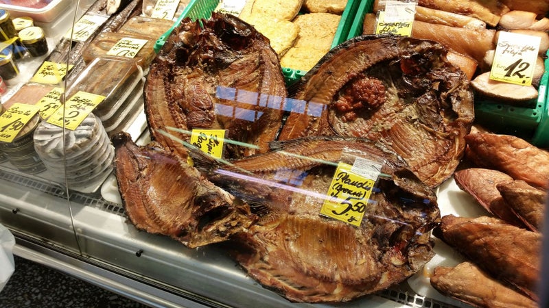 We drinken en eten wat in een klein Lets eethuis. Komen in een winkel aan de praat met een Letse die ons het Letse woord voor zure room kan geven, zodat we dat ook zelf kunnen zoeken. Al met al een leuke ochtend. We moeten alleen vanaf de markt rennen naar de camper want het weer is weer omgeslagen, het hoost.